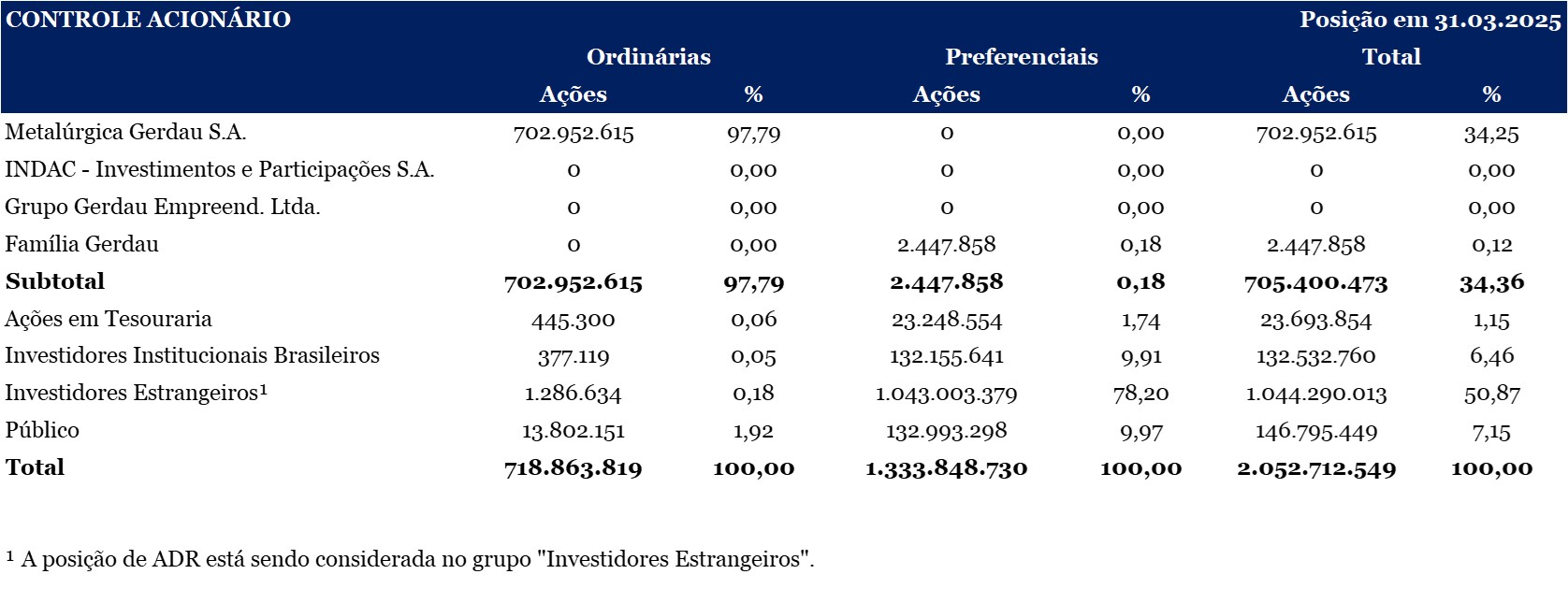 O quadro abaixo indica o número de ações da Gerdau S.A.: